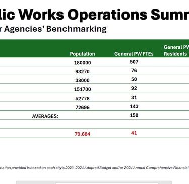 In raw numbers, this translates into a shortfall of roughly 98 positions across Public Works and Utilities compared to where Upland should be. These gaps strain our ability to deliver even baseline services, let alone absorb emergencies, vacancies, or turnover.