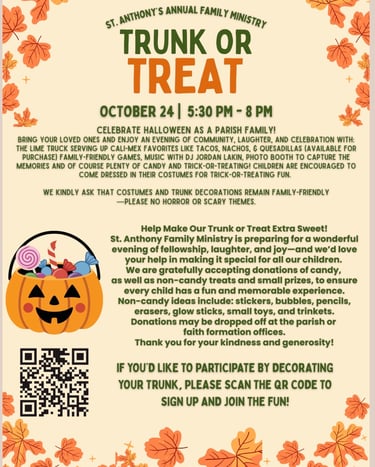 Witch’s Brew Halloween Dinner & Dance: Thursday, October 16 (5 – 7:30 p.m.) – Dinner, music, costumes, and prizes. Tickets still available at (909) 981-4501.