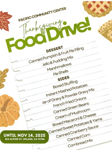 Gobbler Give-A-Way Thanksgiving Meals: Partnering with senior housing providers to deliver holiday meals to residents in need. Residents can “Take a Feather” to donate food items or adopt a senior to sponsor a full meal. Contact Toni at (909) 981-4501.